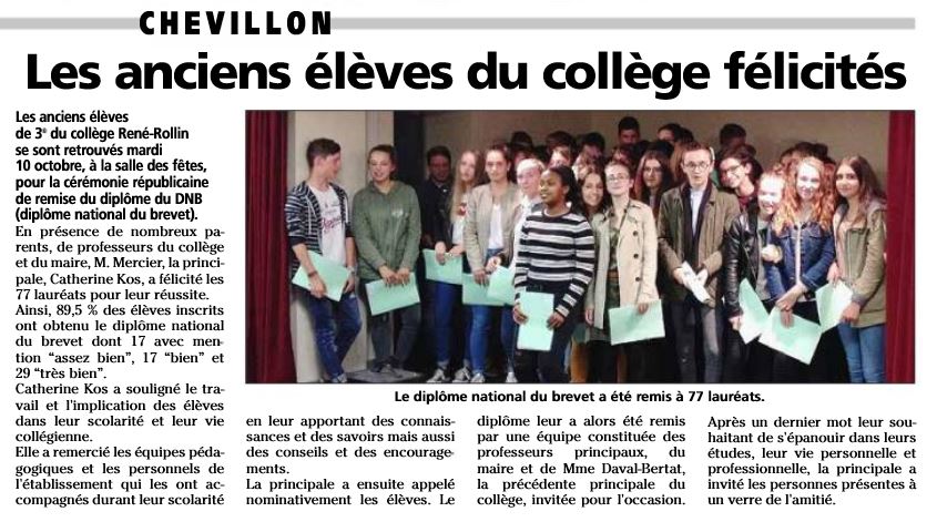 jhm du 19.10.17 Les anciens élèves du collège félicités