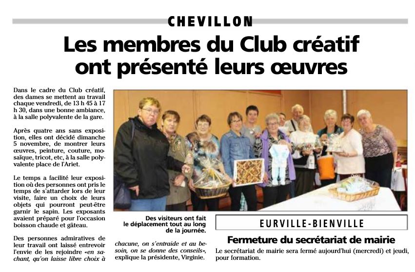 jhm du 08.11.17 les membres du club créatif ont présenté leurs oeuvres